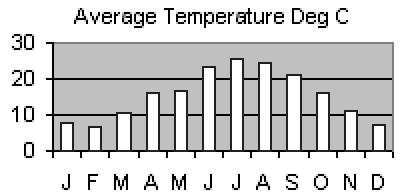Has temperatures averaging a high of 17°C in October to 12°C in